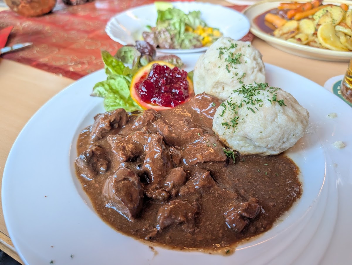The menu at Landgasthaus Zum Schleenhof is a celebration of regional specialties, offering something for everyone. From hearty meats like juicy steaks and tender roast pork to lighter fare such as fresh salads and flavorful fish dishes, each item is prepared with the finest ingredients. A standout on the menu is the famous "Schleenhof Schnitzel," a perfectly breaded and fried pork cutlet served with a side of crispy fries and creamy mushroom sauce. It's the perfect example of how traditional German dishes can be elevated with care and attention to detail.