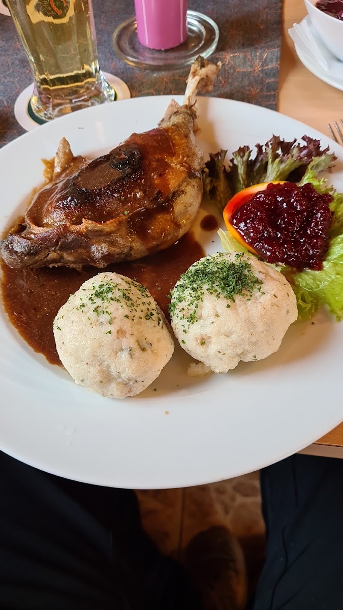 The wine list at Landgasthaus Zum Schleenhof is another highlight. Featuring a carefully curated selection of local and international wines, there’s a bottle for every palate. If you're unsure what to pair with your meal, the knowledgeable staff is always ready to recommend a wine that will enhance your dining experience. For those who prefer beer, the restaurant offers a range of craft brews, including traditional German lagers and ales that complement the rich flavors of the food.